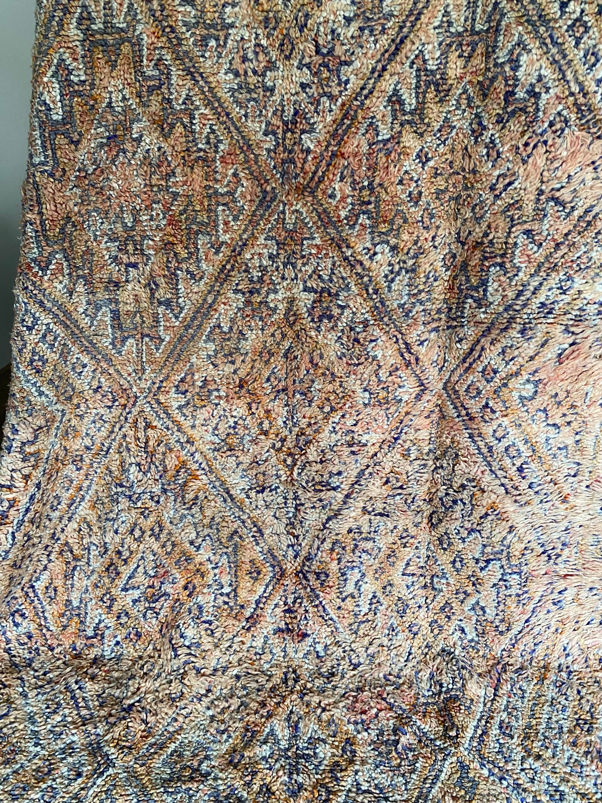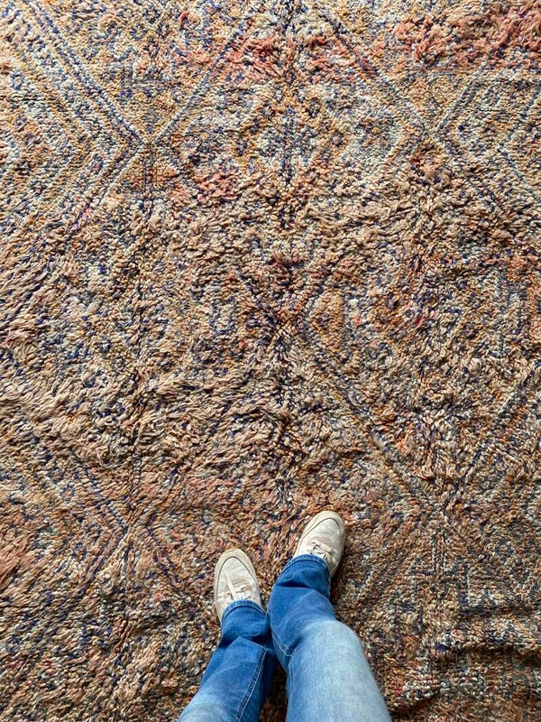 Wat een geweldig mooi uniek vintage vloerkleed is dit. (minstens 30 jaar oud)Alle MissNomad vloerkleden zijn unieke stukken!Ik was dan ook meteen op slag verliefd op deze..door de prachtige aarde,nude,peach kleur is het een echte eye cather voor in huis!Het kleed is prachtig afgewekt een uniek fantastisch exemplaar!Zelfs de achterkant is prachtig(leuk om eens om te draaien)