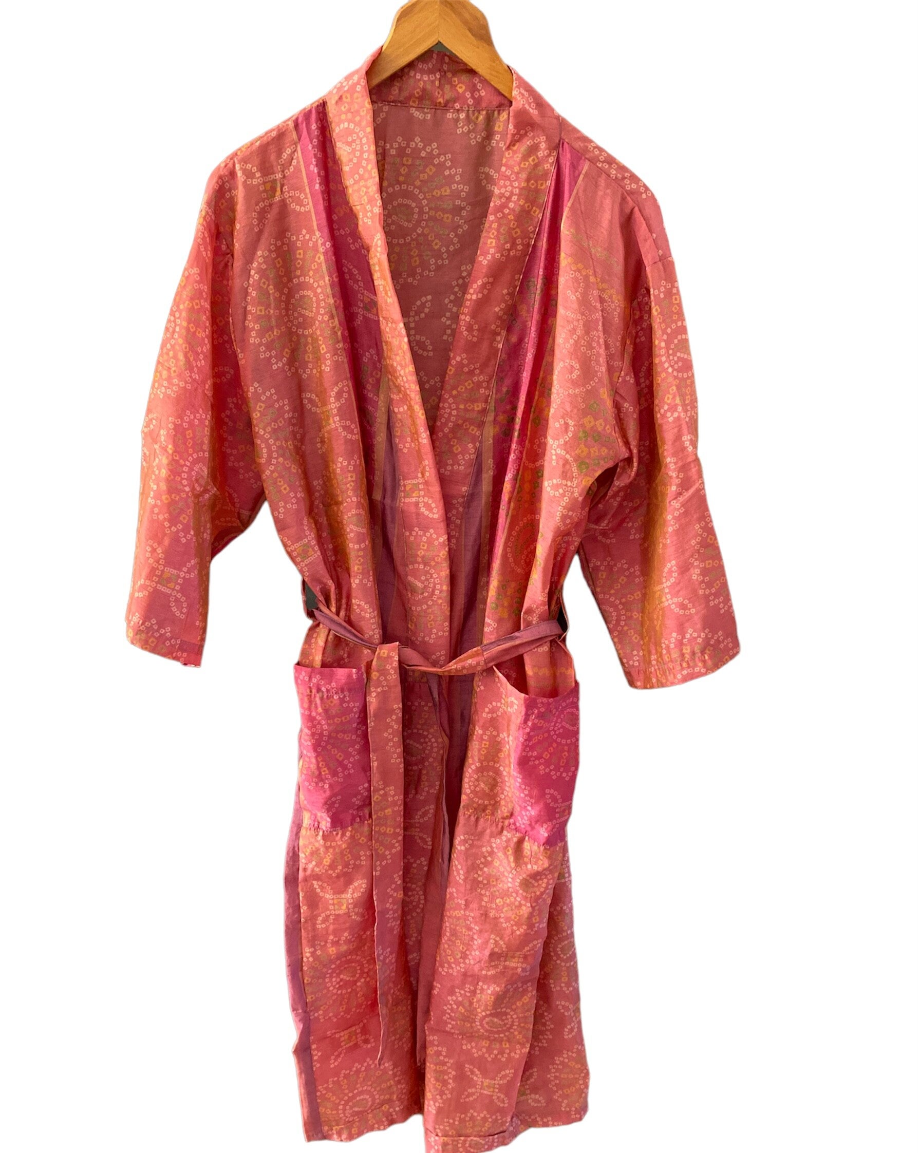 De kimono's zijn gemaakt van upcycled Sari zijden en af en toe met een beetje nylon. Van elke kimono is er maar één gemaakt. En de vrolijke motieven maken deze kimono's zo speciaal en uniek.Je zult verrast zijn als je het aan hebt!
