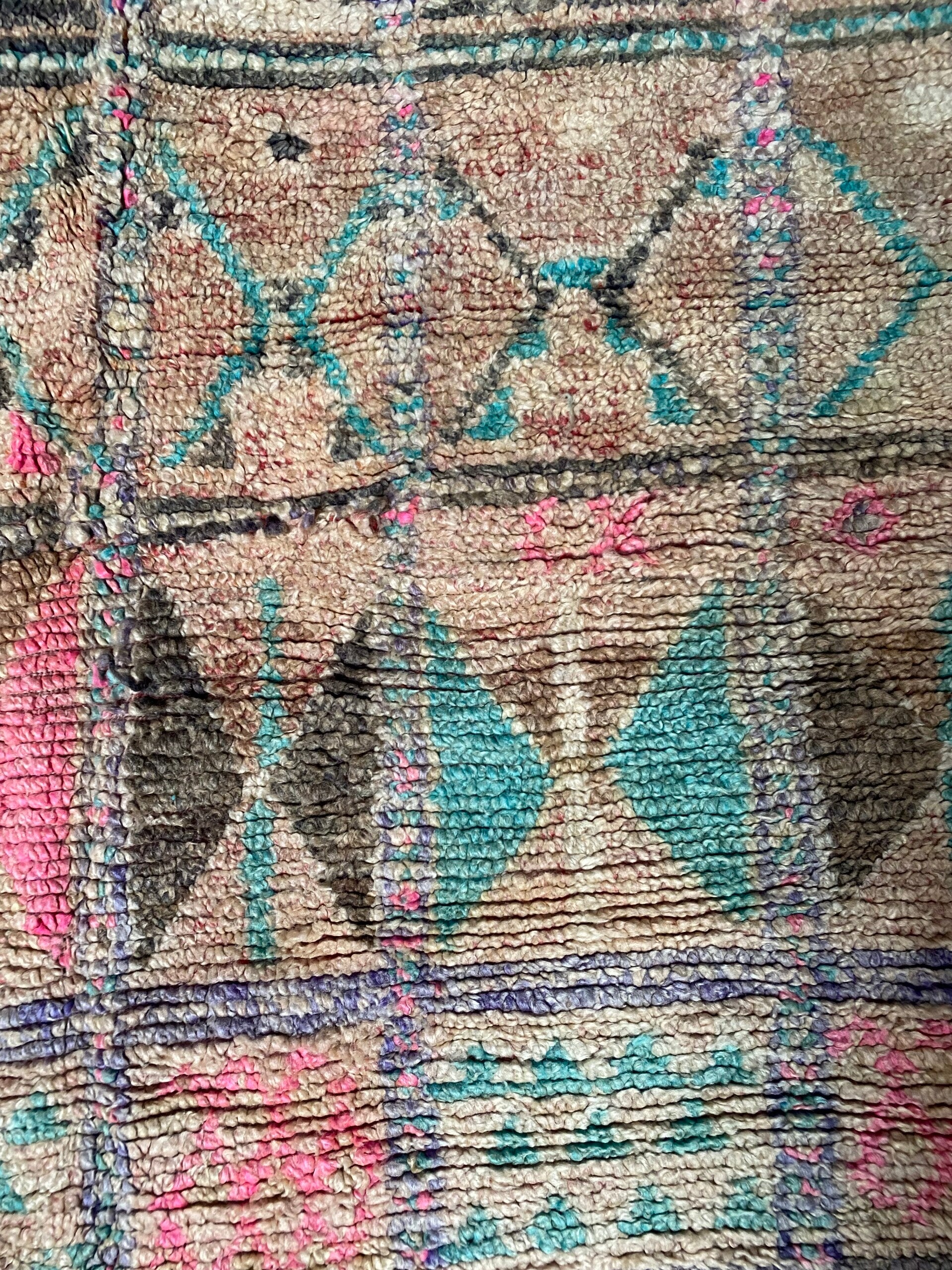 Wat een geweldig mooi vintage Boujaad (Boujad)vloerkleed is dit!Alle MissNomad vloerkleden zijn unieke stukken..ik was dan ook meteen op slag verliefd op deze,door de peachy kleur nuances met prachtige authentieke versieringen is het een echte eye cather voor in huis!