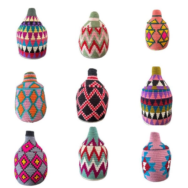 Deze unieke berbermandjes worden met de hand gevlochten in Marokko, vooral in het zuiden van Marokko waar deze oorspronkelijk vandaan komen.