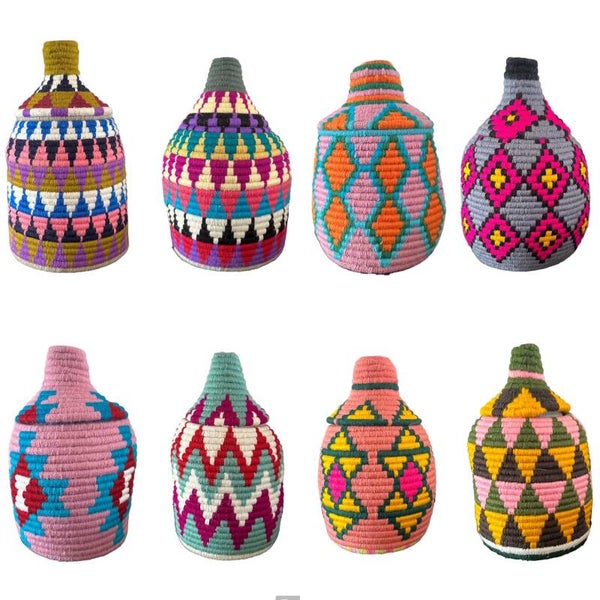Deze unieke berbermandjes worden met de hand gevlochten in Marokko, vooral in het zuiden van Marokko waar deze oorspronkelijk vandaan komen.