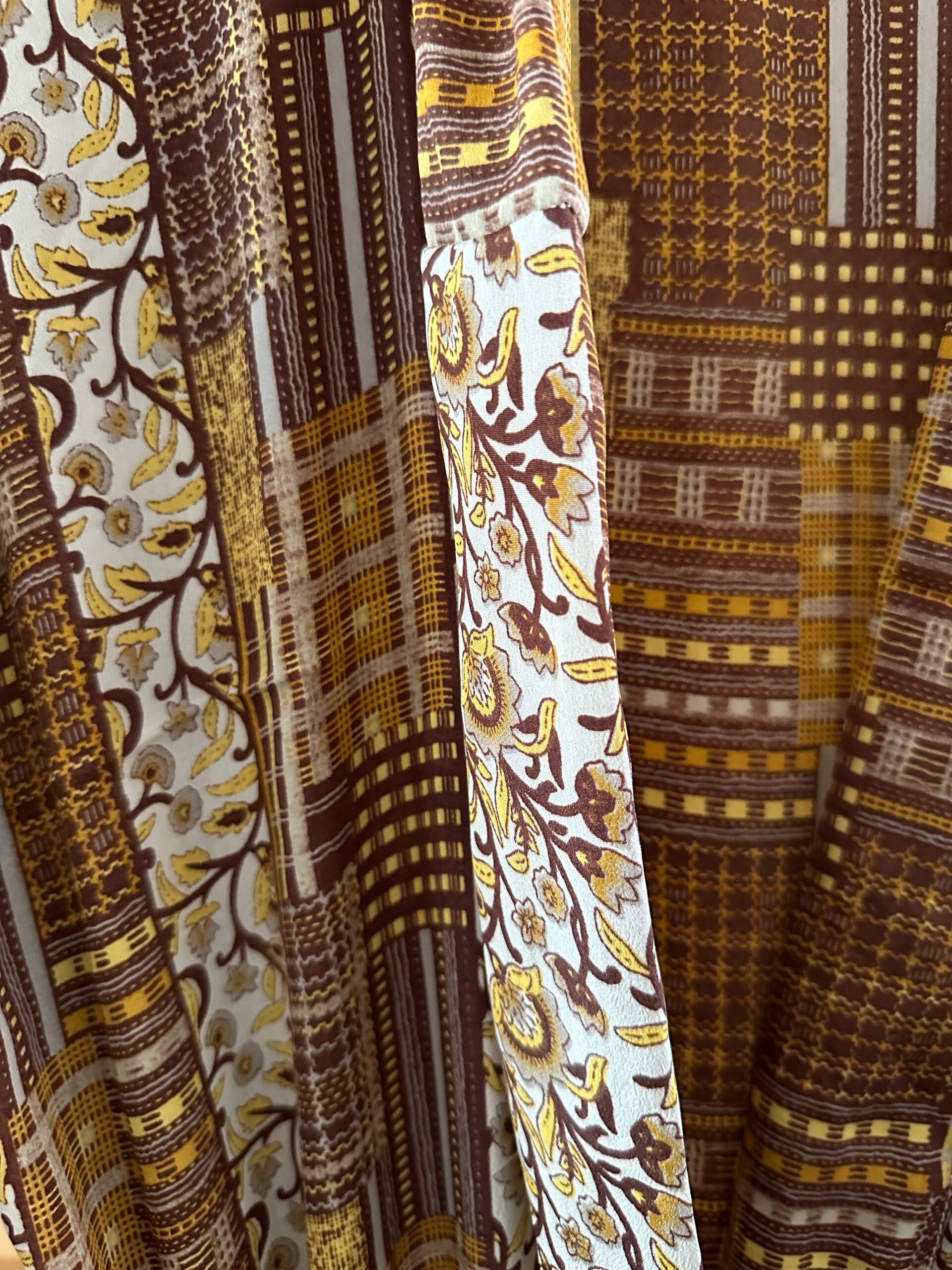 De kimono's zijn gemaakt van upcycled Sari zijden en af en toe met een beetje nylon. Van elke kimono is er maar één gemaakt. En de vrolijke motieven maken deze kimono's zo speciaal en uniek.Je zult verrast zijn als je het aan hebt!