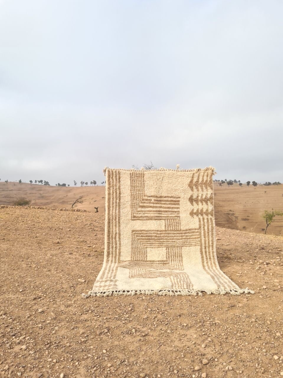 Alle MissNomad vloerkleden zijn unieke stukken! Ik liet dit vloerkleed speciaal maken en wilde prachtig zacht beige wol met crème kleur en het is een echte Eye catcher voor in huis geworden.Het vloerkleed is prachtig afgewerkt, een uniek fantastisch exemplaar! Zelfs de achterkant is zo prachtig om te zien.