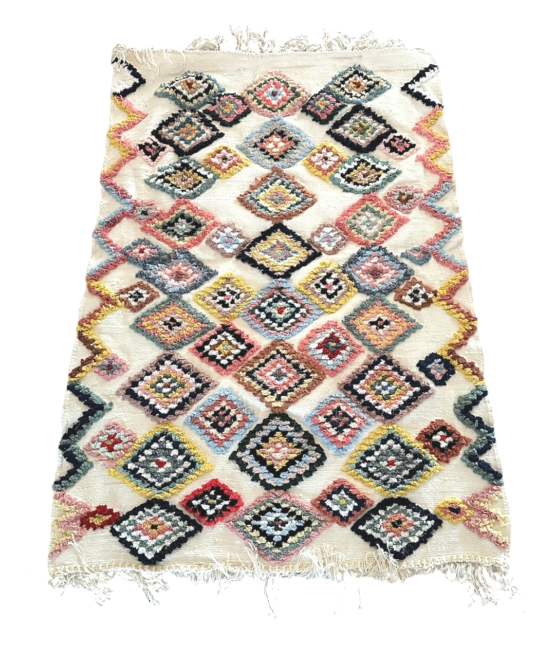Handgemaakt in het Atlas gebergte van Marokko waar ik direct samenwerk met deze weefsters.