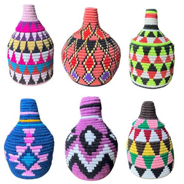 Deze unieke berbermandjes worden met de hand gevlochten in Marokko, vooral in het zuiden van Marokko waar deze oorspronkelijk vandaan komen.