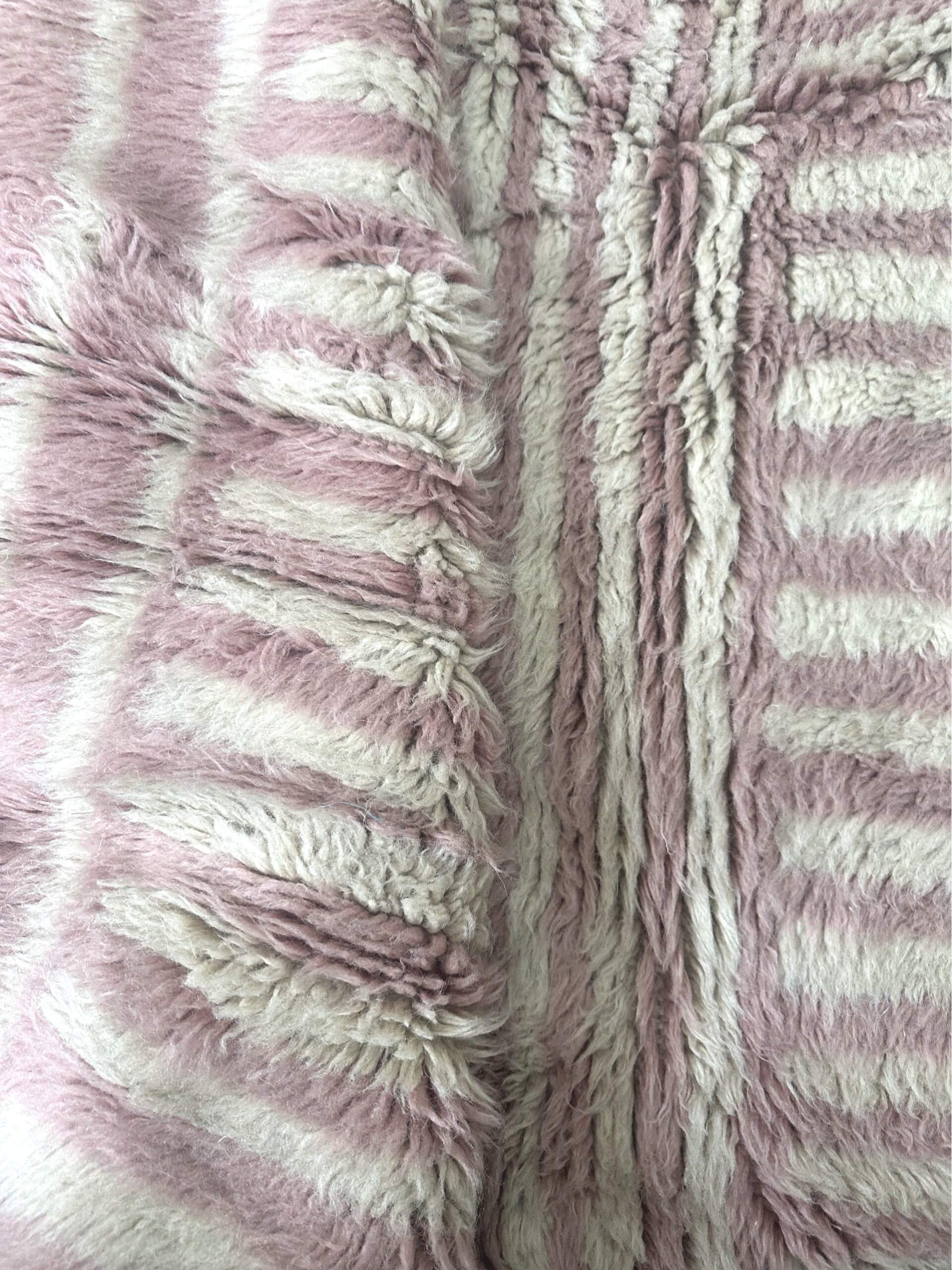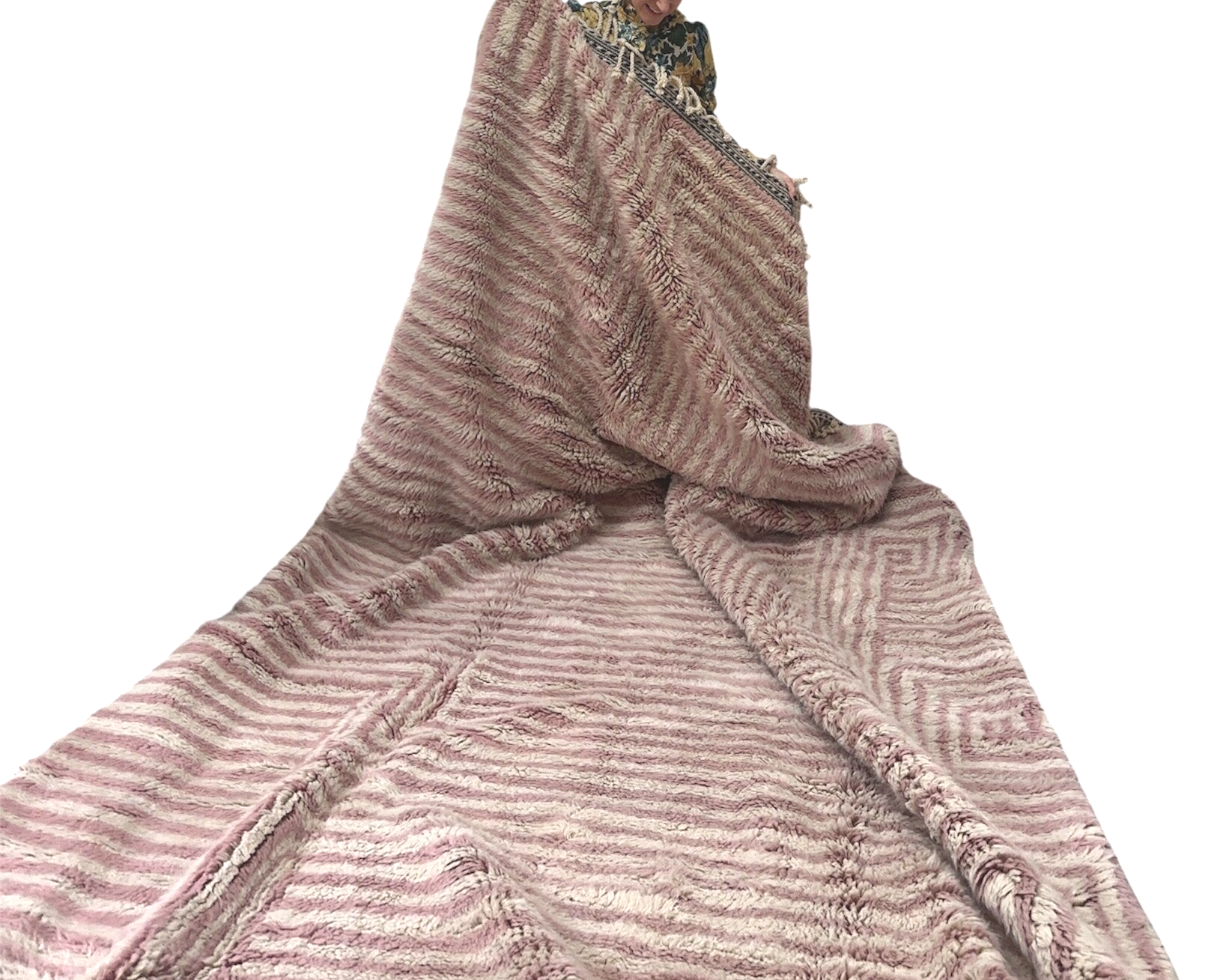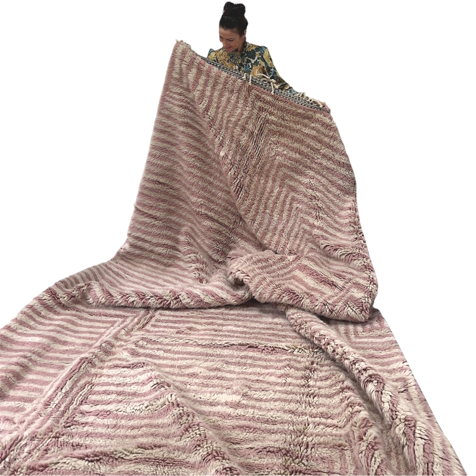 Met de hand geknoopt door vakvrouwen in het Atlasgebergte van Marokko, straalt dit kleed pure luxe en vrouwelijkheid uit.
