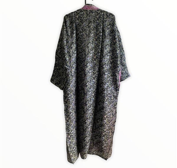 De kimono's zijn gemaakt van upcycled Sari zijden en af en toe met een beetje nylon. Van elke kimono is er maar één gemaakt. En de vrolijke motieven maken deze kimono's zo speciaal en uniek.Je zult verrast zijn als je het aan hebt!
