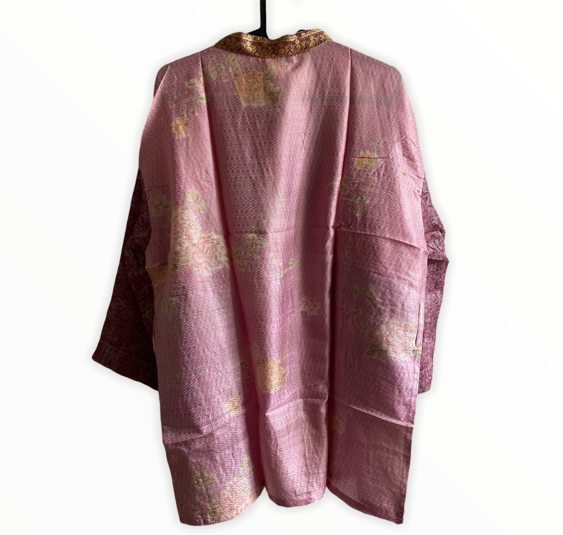 De kimono's zijn gemaakt van upcycled Sari zijden en af en toe met een beetje nylon. Van elke kimono is er maar één gemaakt. En de vrolijke motieven maken deze kimono's zo speciaal en uniek.Je zult verrast zijn als je het aan hebt!