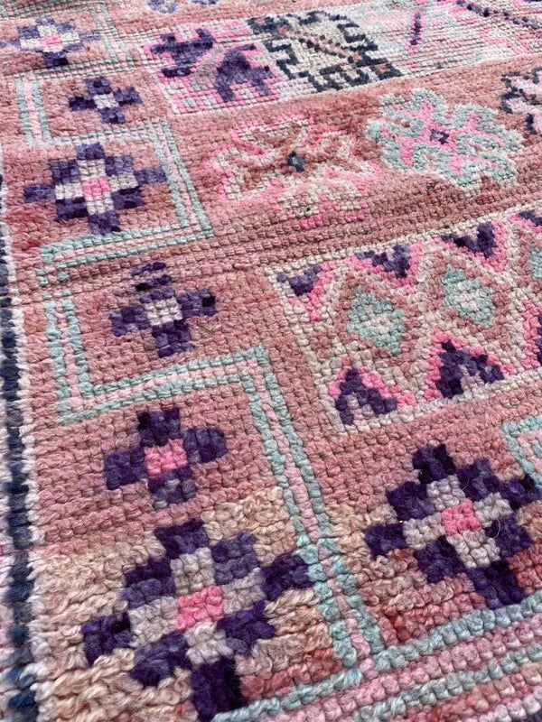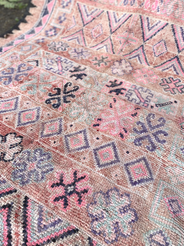 Superzacht en zooo ontzettend mooi uniek Boujad vloerkleed. Alle MissNomad vloerkleden zijn unieke stukken!Ik was meteen op slag verliefd op deze..door de prachtige kleuren combinatie's en de prachtige felle kleuren een echte eye cather voor in huis!Het kleed zo prachtig afgewerkt een uniek fantastisch exemplaar!