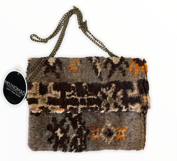 Super mooi tasje van 100% dik wol gemaakt van een vintage boujad vloerkleed uit Marokko.