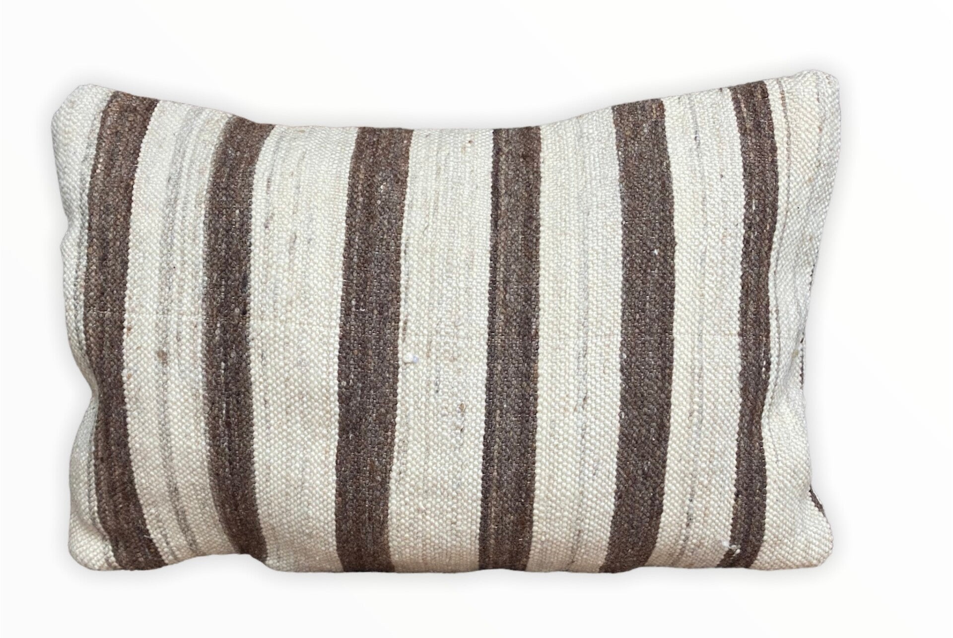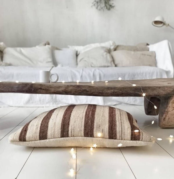 Geef je kamer een stylish touch met deze originele kussens.Het basic berber streep motief in ongeverfd naturel met bruin en beige maakt dit kussen tot een echte musthave!Kijk ook eens bij de andere kussens ....super leuk om te mixen met elkaar!