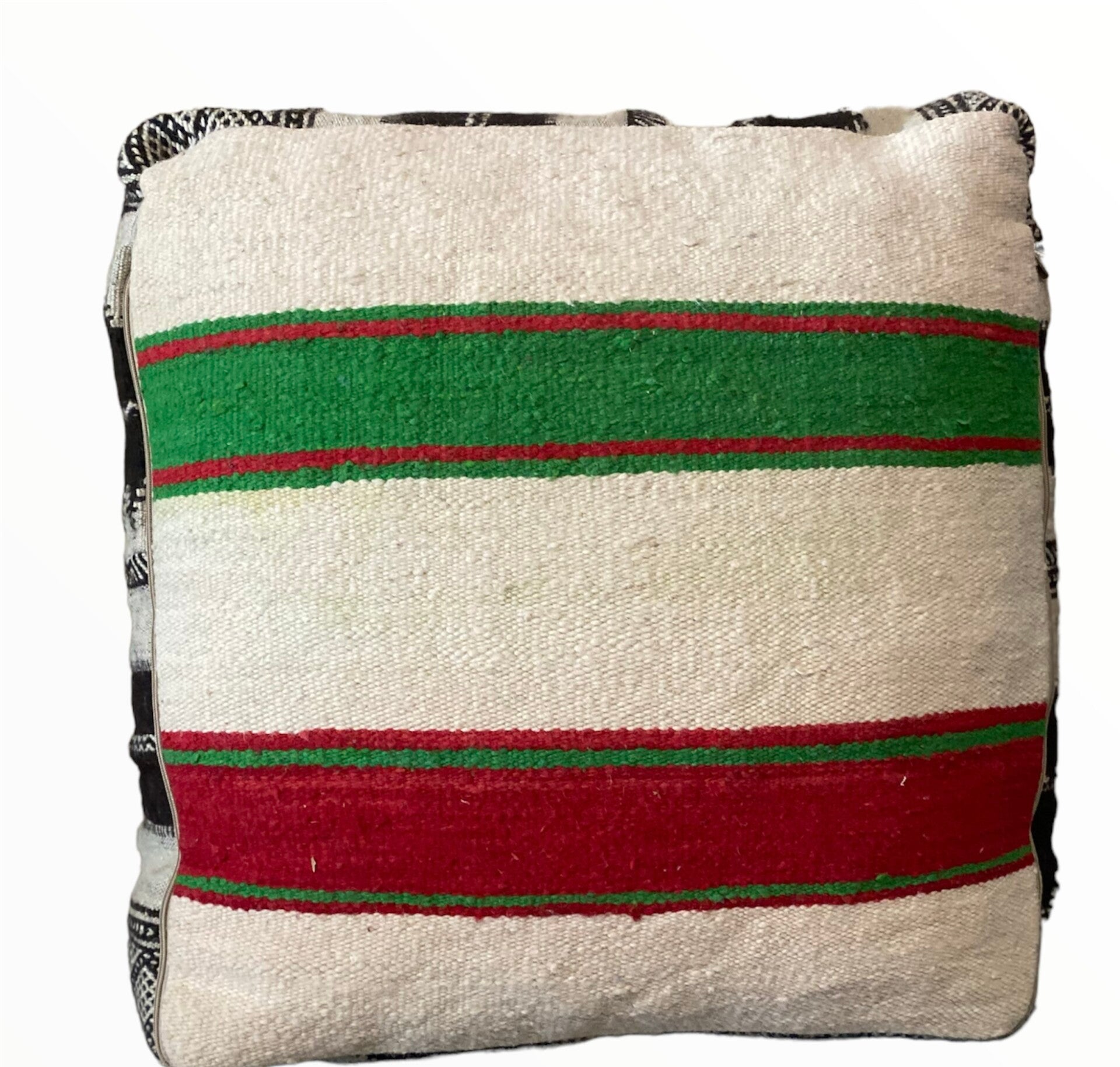 Geef je kamer een stylish touch met deze originele vloerkussens.Het basic berber streep motief in combinatie met (ongeverfd)naturel en diep bruin maakt dit kussen tot een echte musthave!Leuk om te combineren met de andere kelim zanafi kussens in de webshop.