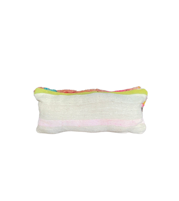Prachtig versierd kussen speciaal gemaakt voor Missnomad van resten boujaad vloerkleden.De kleur en het patroon is toch geweldig!!Inclusief binnenkussen.Gemaakt in Marokko van vintage Boujaad kleden.