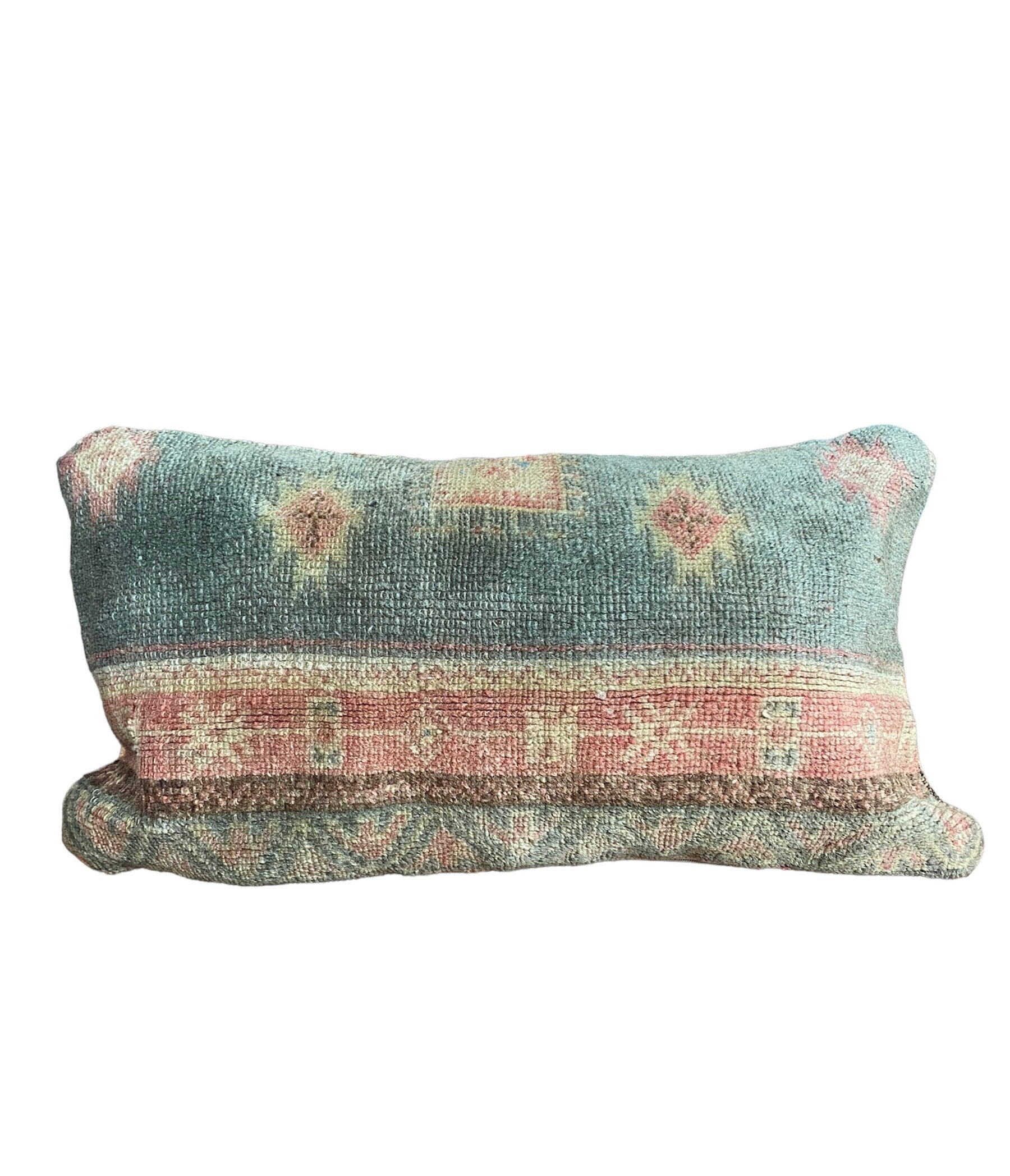 Prachtig versierd kussen speciaal gemaakt voor Missnomad van resten boujaad vloerkleden.De kleur en het patroon is toch geweldig!!Inclusief binnenkussen.Gemaakt in Marokko van vintage Boujaad kleden.Er zijn een paar verschillende van dit vloerkleed gemaakt,je vindt ze in de webshop!
